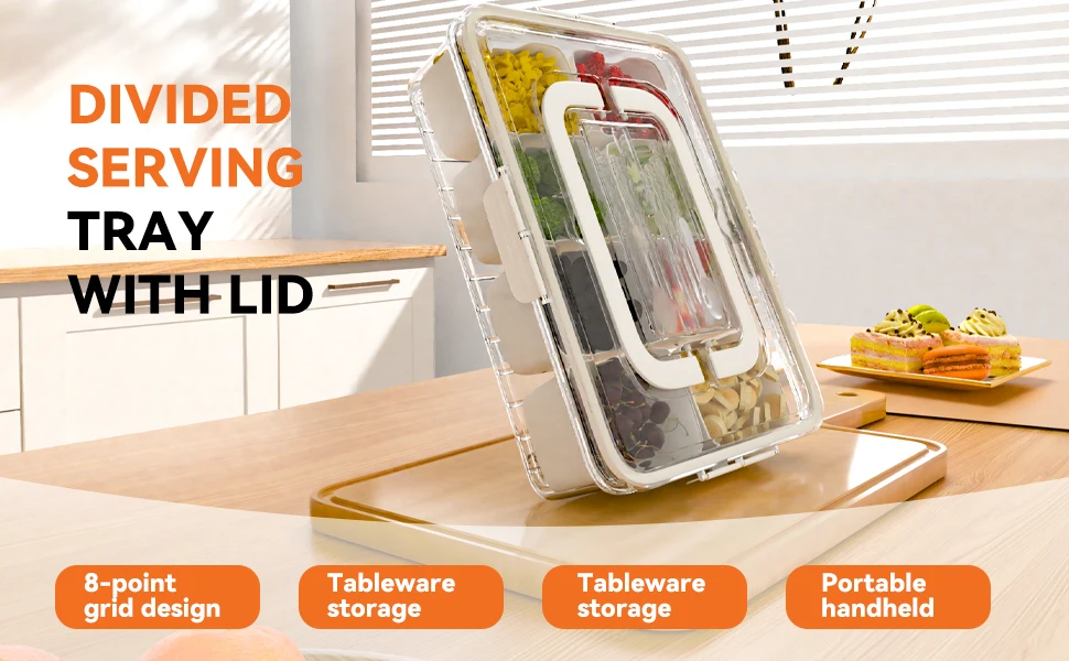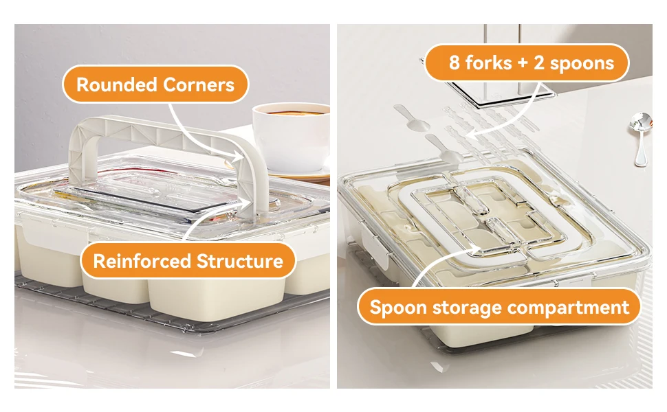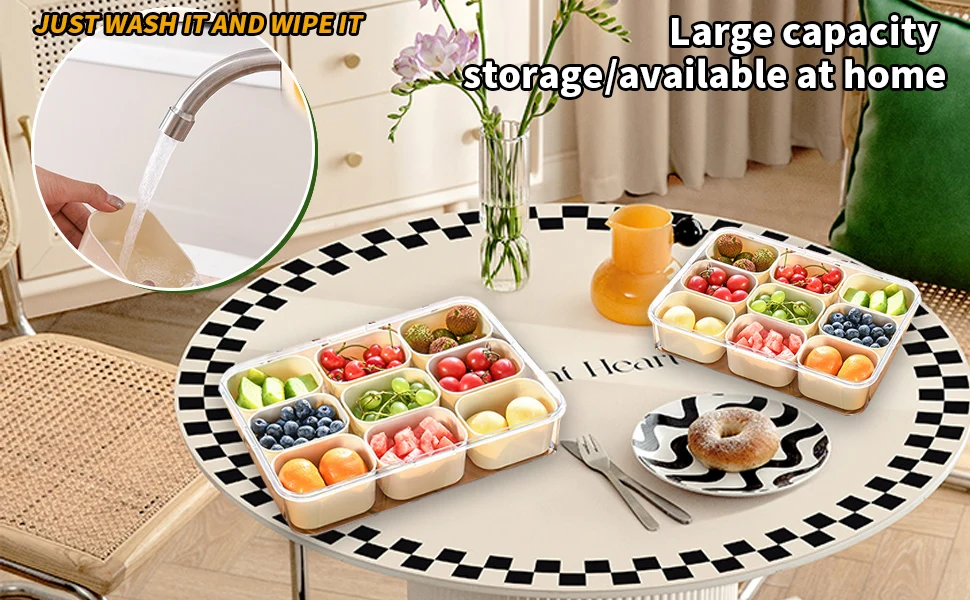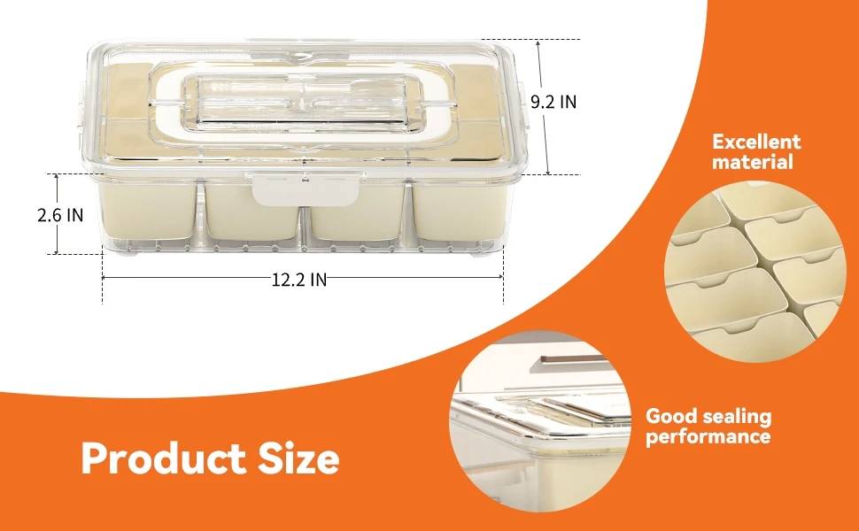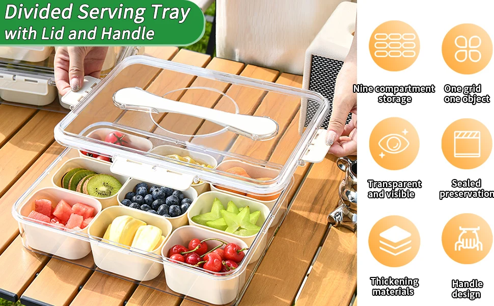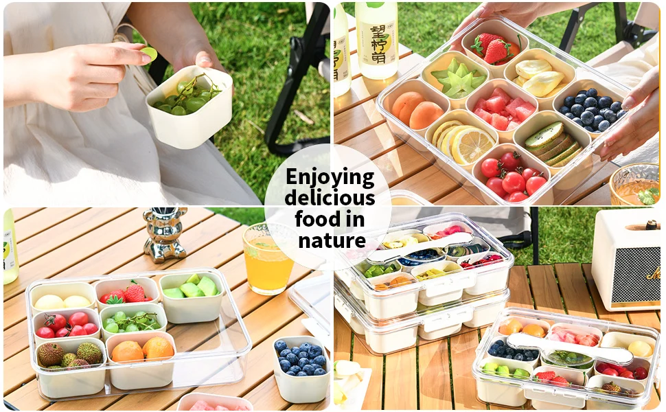 【Selected Materials】: Selected food-grade PET materials. Can come into direct contact with food, providing a more reassuring use. The snack box container has a very good feel, with a transparent shell that allows you to appreciate the beauty of food storage. Can be used as a tray for family gatherings, parties, and picnics.