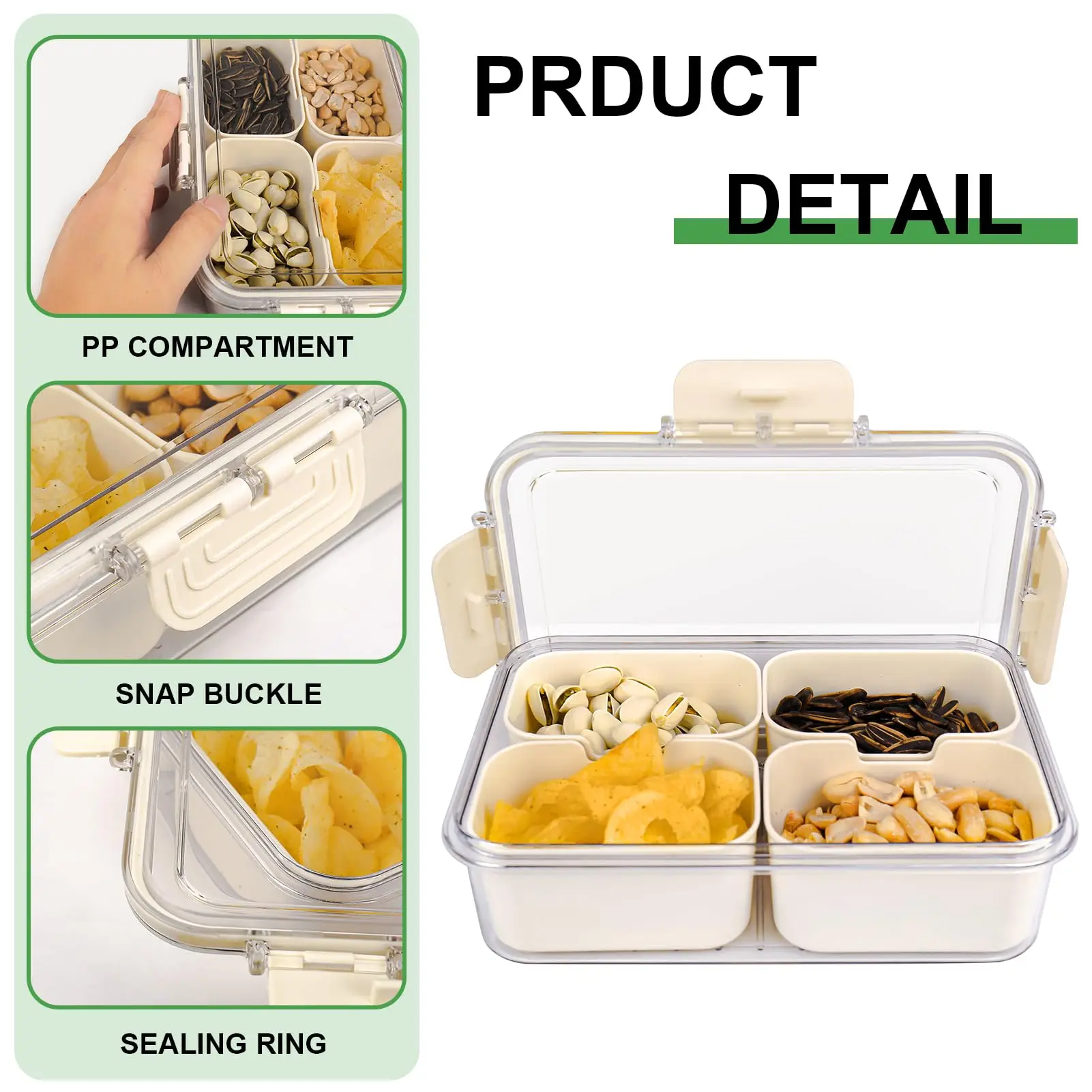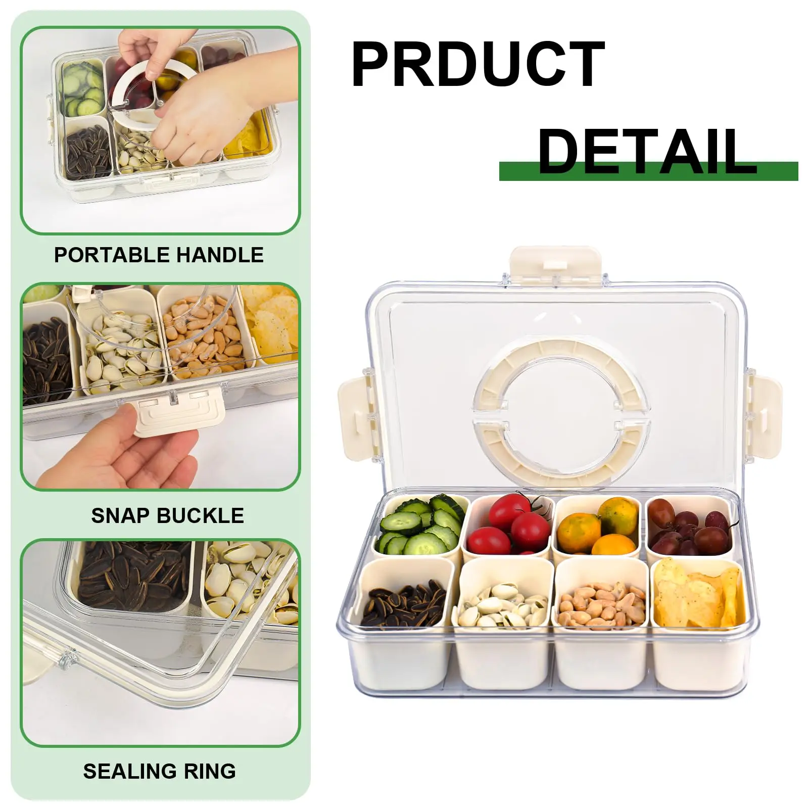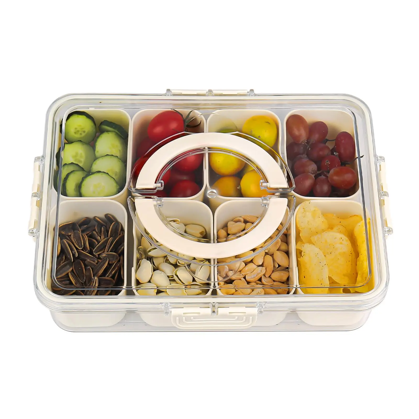 Portable Snackle Box Container Divided Serving Tray with Lid and Handle Clear Snack Box Organizer for Fruits Candy, Snacks