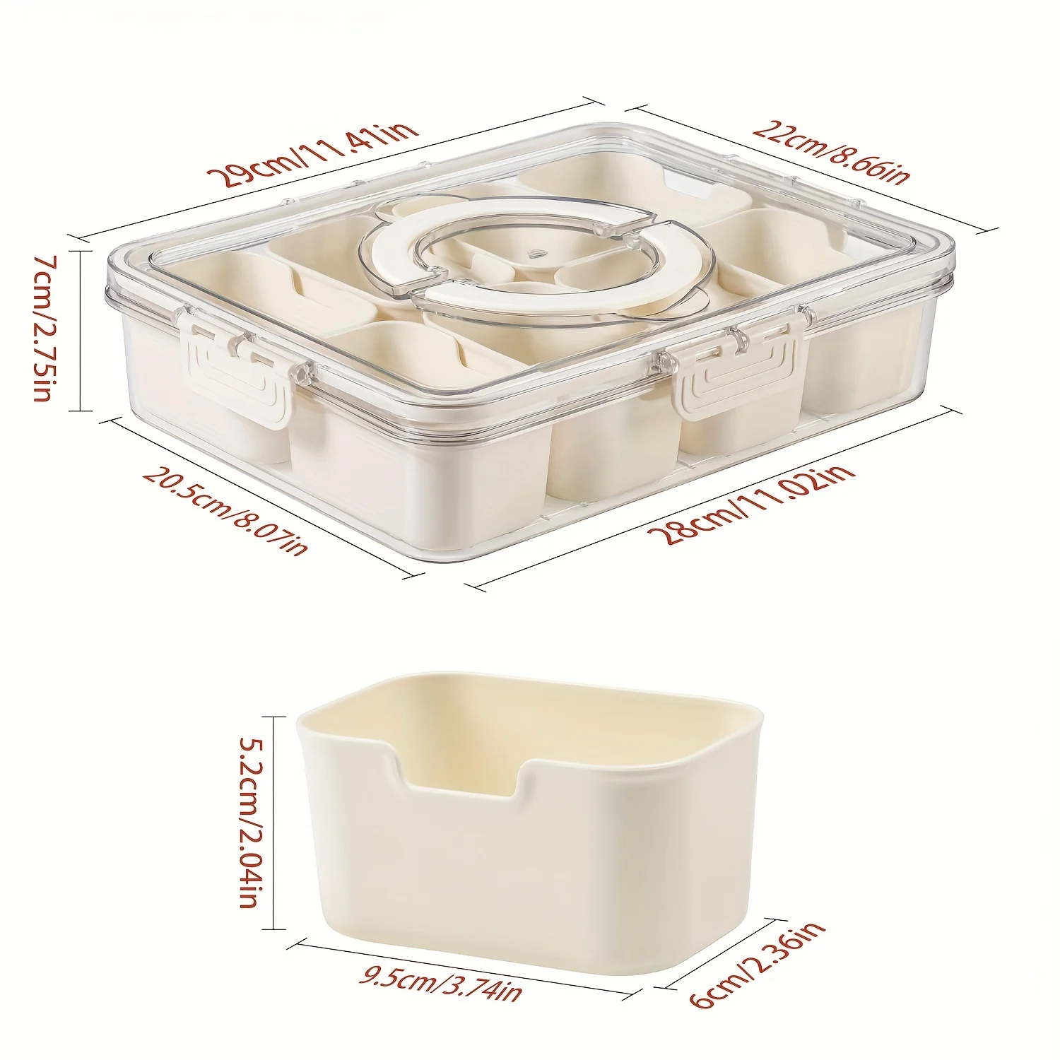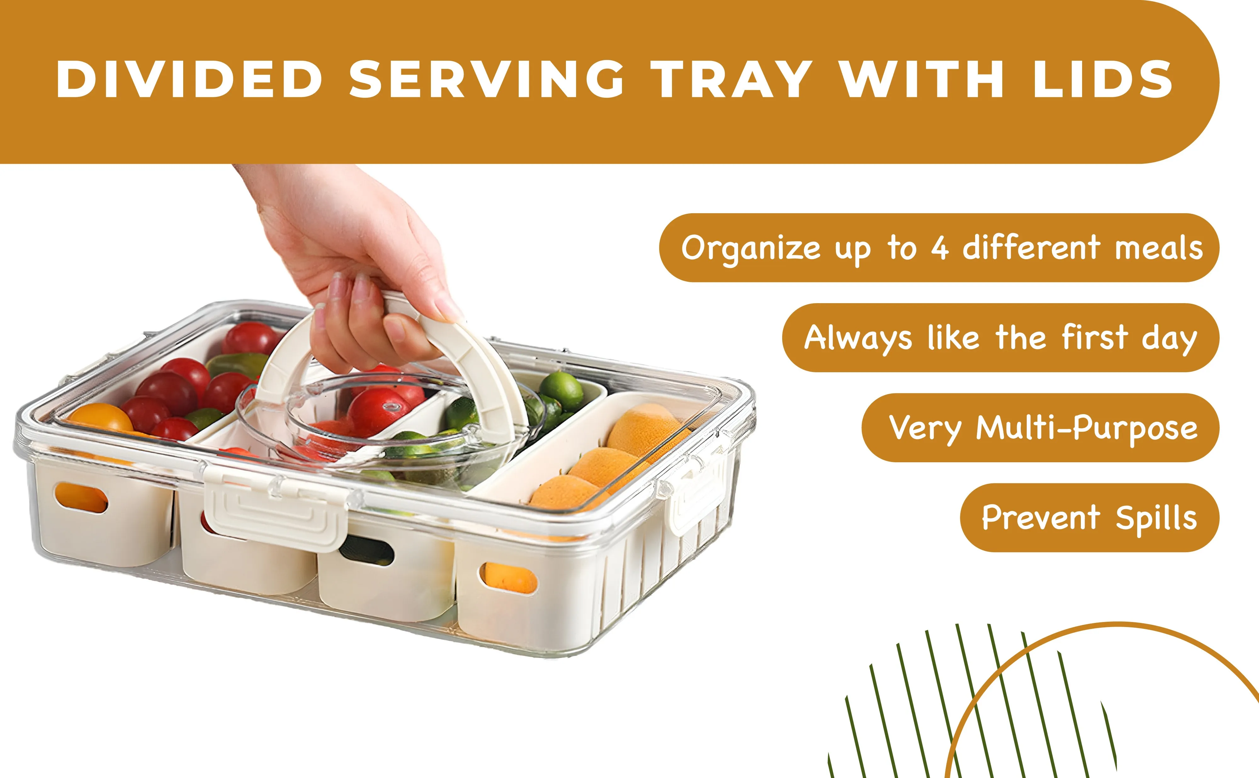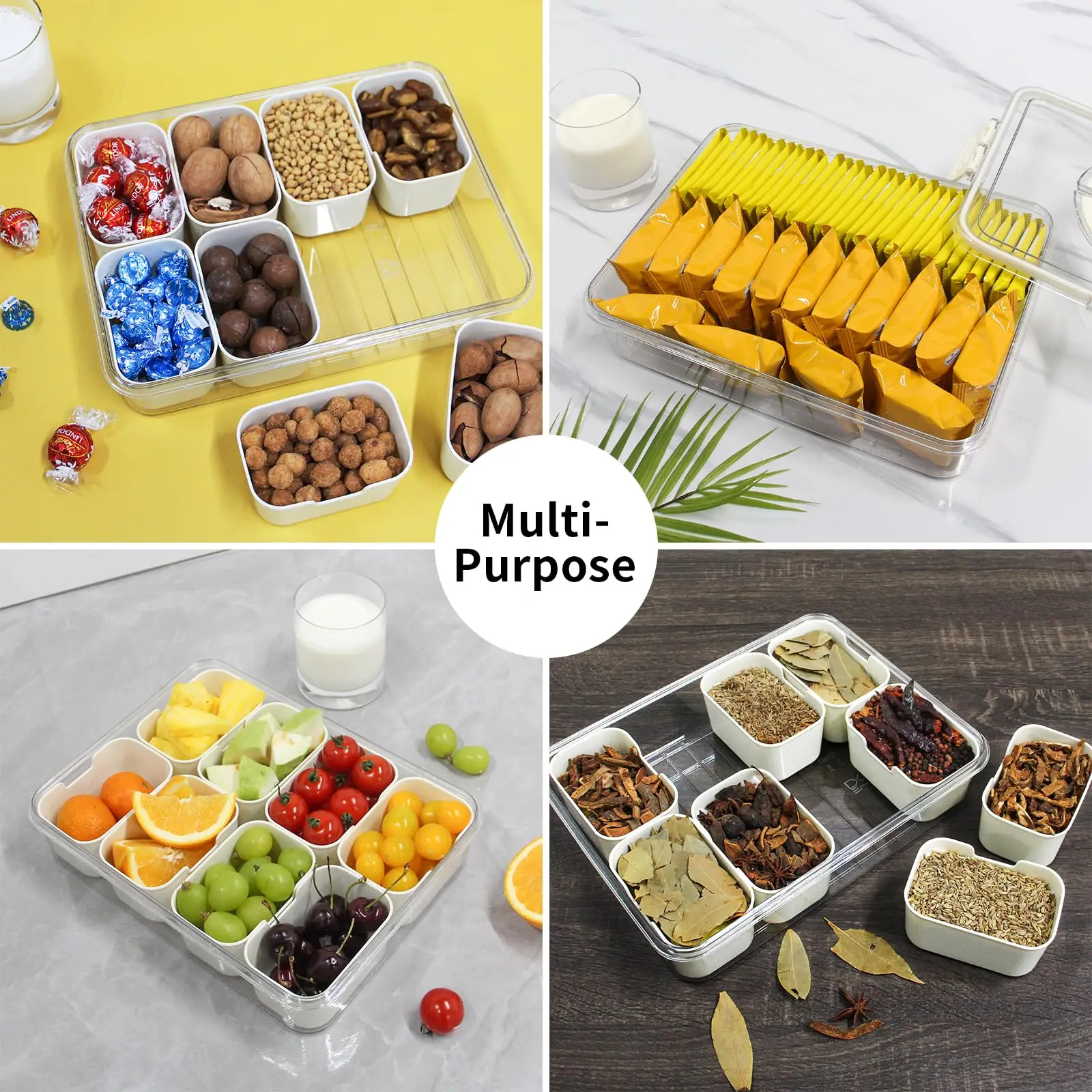 Portable Snackle Box Container Divided Serving Tray with Lid and Handle Clear Snack Box Organizer for Fruits Candy, Snacks