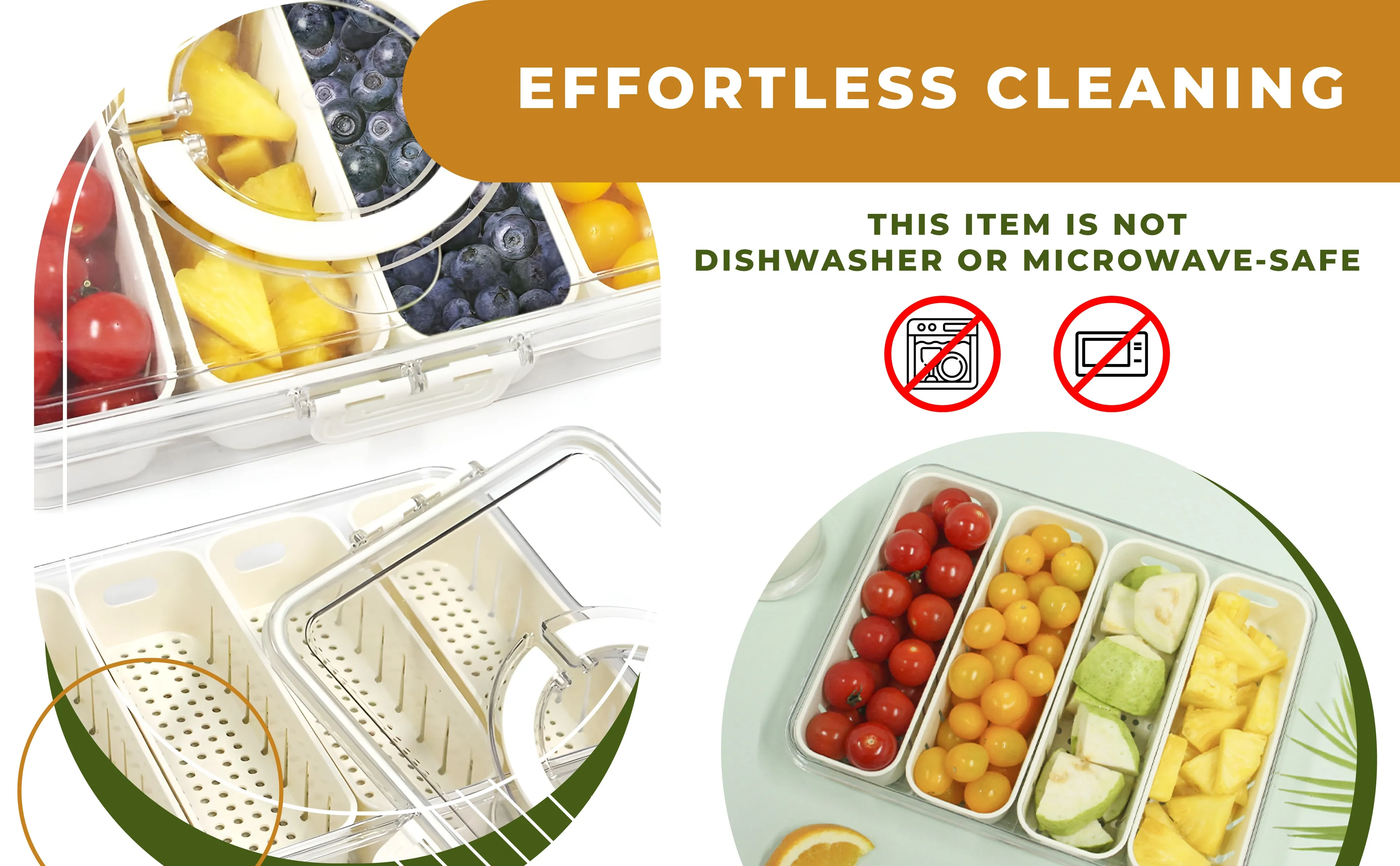 【Easy to clean】: The detachable fruit storage container can be rinsed with water after use, no need to put it in the dishwasher for high-temperature cleaning. Tip: Not suitable for dishwasher or microwave. We are concerned that the high temperature of the dishwasher may cause slight deformation of the draining basket.